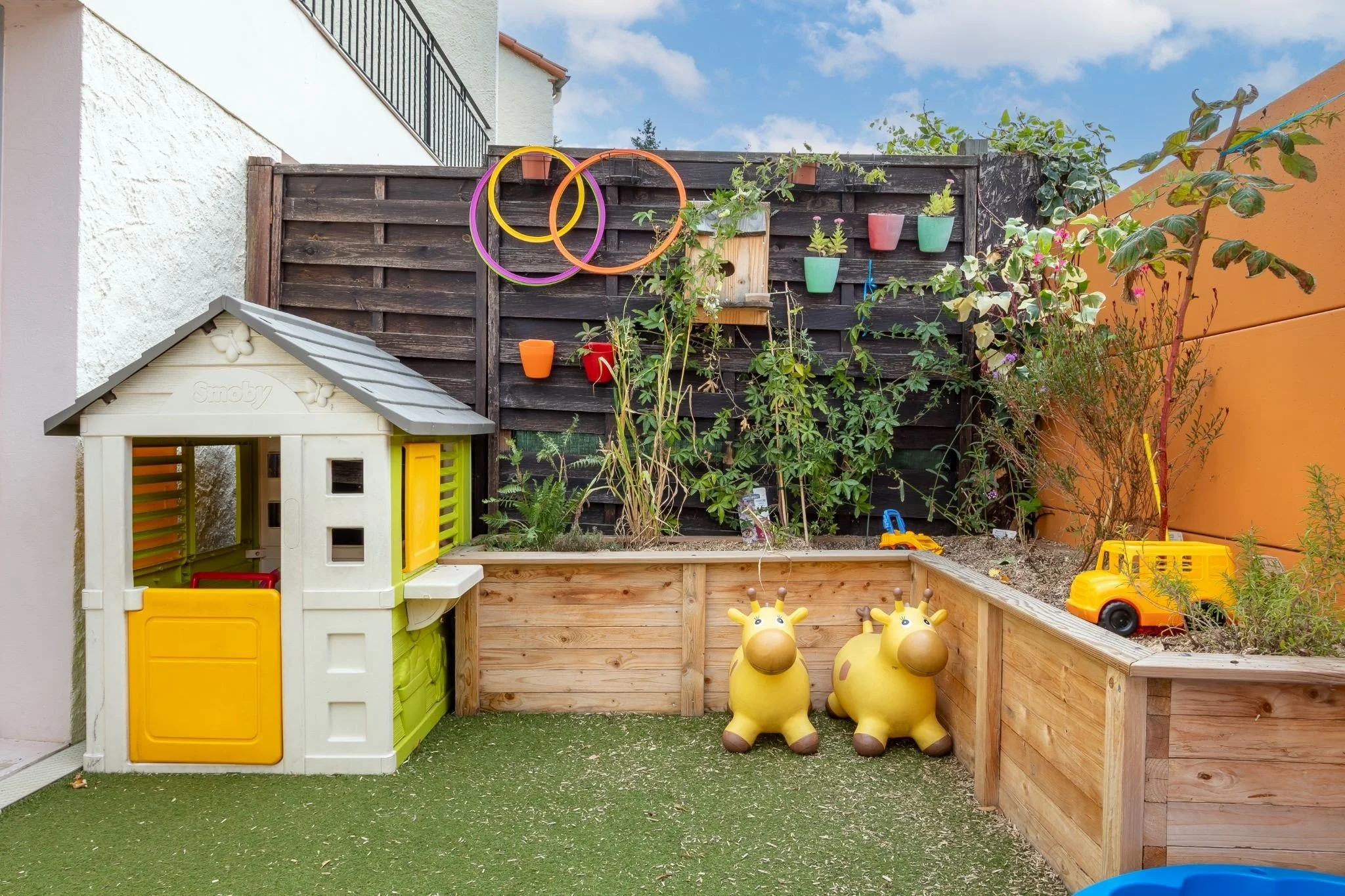 Environnement riche pour les enfants notamment grâce à un espace vert permettant d’aller régulièrement à la rencontre des animaux, ainsi qu’à des sorties à la médiathèque et au parc situé à quelques minutes à pied.